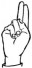 На ћирилици написано КОСТАДИН ВУЈИЧИЋ састоји се из 15 слова [?]. Исписано ћириличном једноручном азбуком за глувонеме: